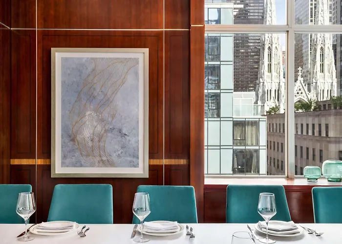 The on-site restaurant serves American and Tex-Mex cuisine, providing options for breakfast, lunch, and dinner. Guests can enjoy meals while overlooking NYC icons like Rockefeller Center. Nearby dining includes Johnny Utah's and Bill's Bar & Burger.