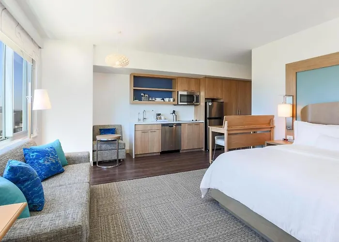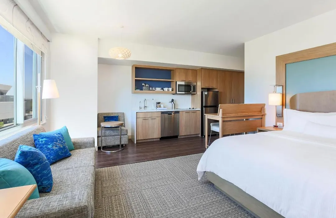 The hotel features spacious openflow suites designed to support comfort and productivity, each equipped with fully equipped kitchens, separate workspaces, and signature Heavenly Beds(R). Additionally, all rooms include flat-screen TVs and conveniences such as tea and coffee facilities.