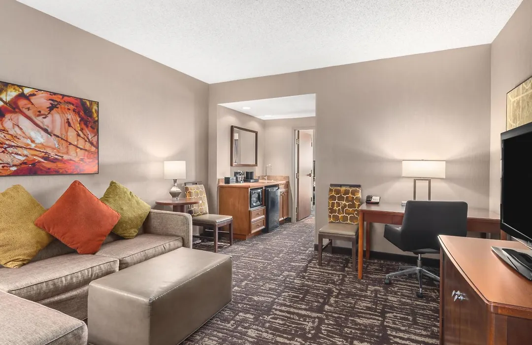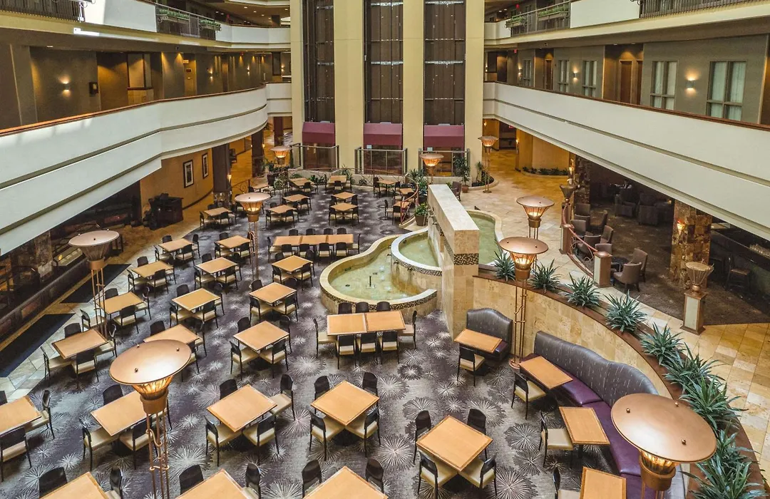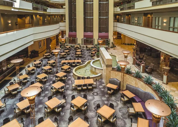 The Embassy Suites provides over 90000 square feet of meeting and conference space, equipped with business facilities for corporate events. The hotel features a 24-hour fitness center and recreational opportunities in the indoor pool and sauna.