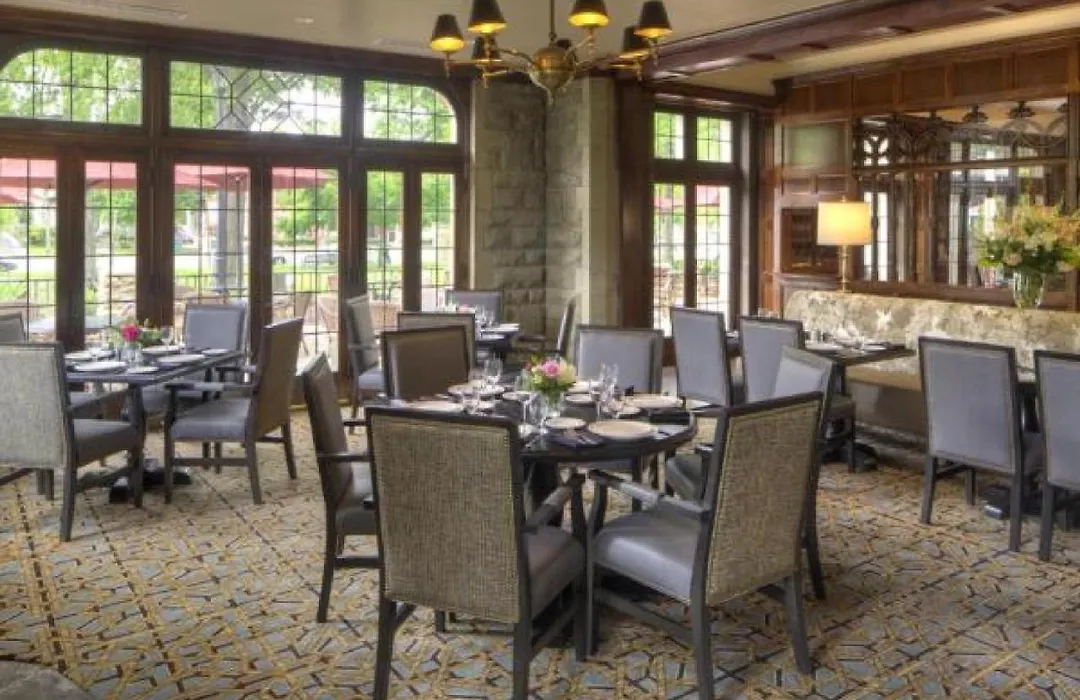 Dining options at the Granville Inn include a restaurant serving a variety of dishes, showcasing menu items like the Pat LaFrieda burger and the Fedora salad. The Bistro provides hearty fare, and outdoor dining is available on The Patio surrounded by landscaped gardens.