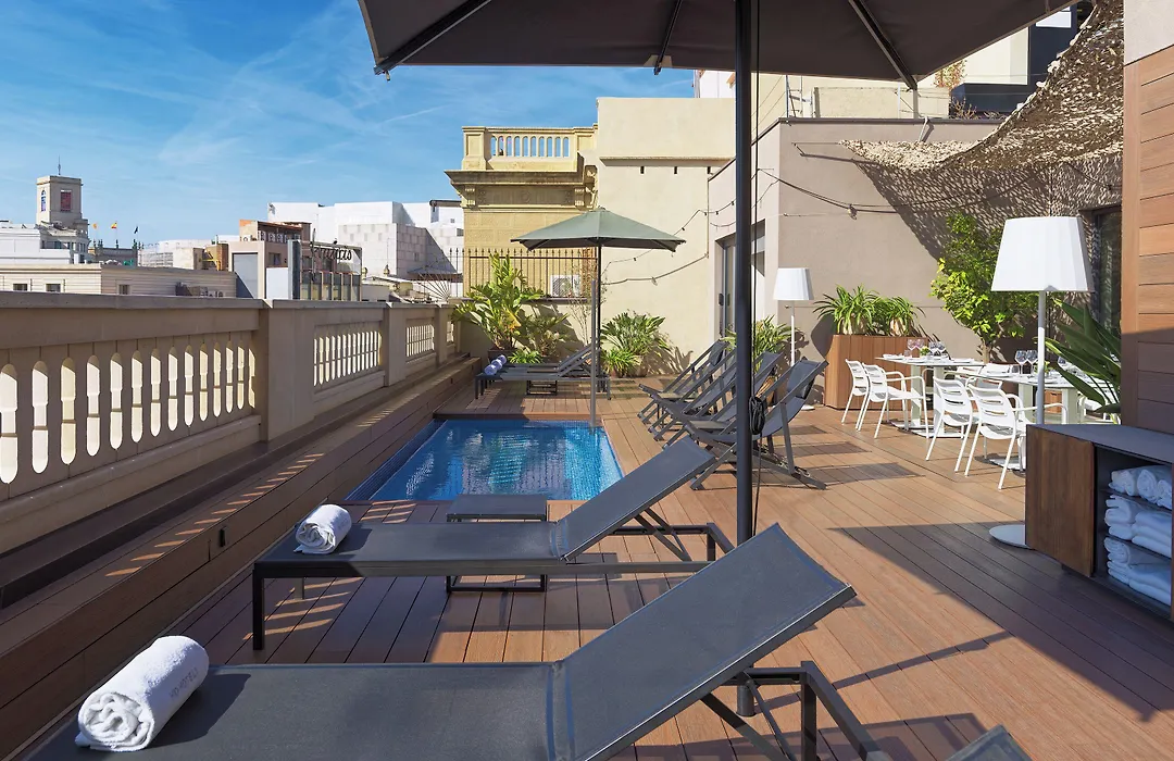 Chic rooms at H10 Urquinaona Plaza feature minimalist design, complete soundproofing, and essential amenities including free Wi-Fi and flat-screen TVs. The accommodations include double rooms with views of Plaça Urquinaona and spacious Junior Suites with private terraces featuring jacuzzis.