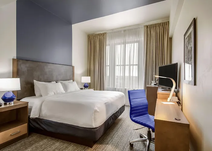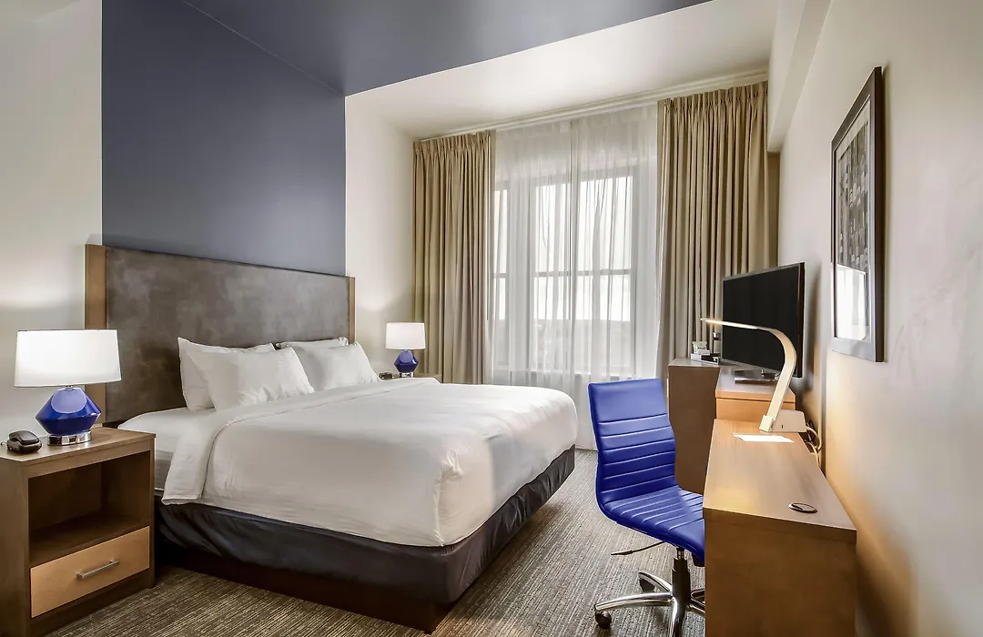 Dining options include the vibrant 222 Union restaurant located on the ground floor, specializing in elevated pub-style fare and a selection of craft beer and spirits. Guests can enjoy a complimentary Grab & Go breakfast to start their day.