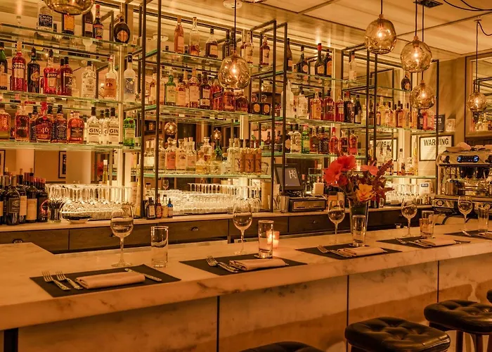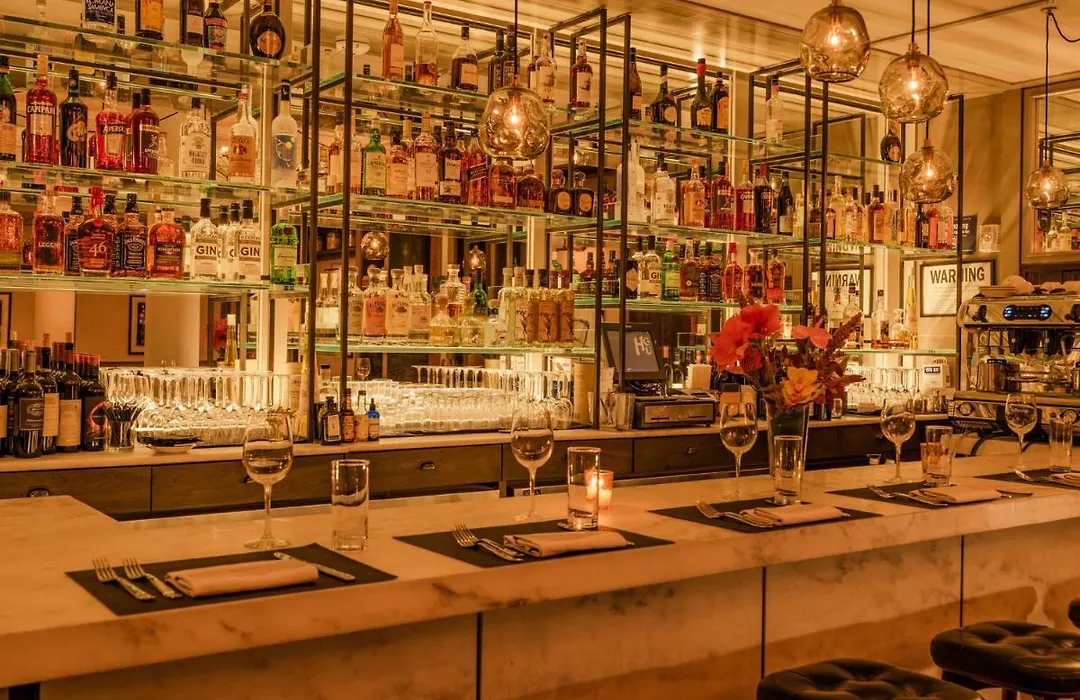 Dining options include the hotel's American Bistro, serving a simple bistro-style menu and breakfast alongside the 1905 Lounge's cocktail offerings. Guests can enjoy music and classic movies at the Rose Hill Rooftop while savoring cocktails with city skyline views.