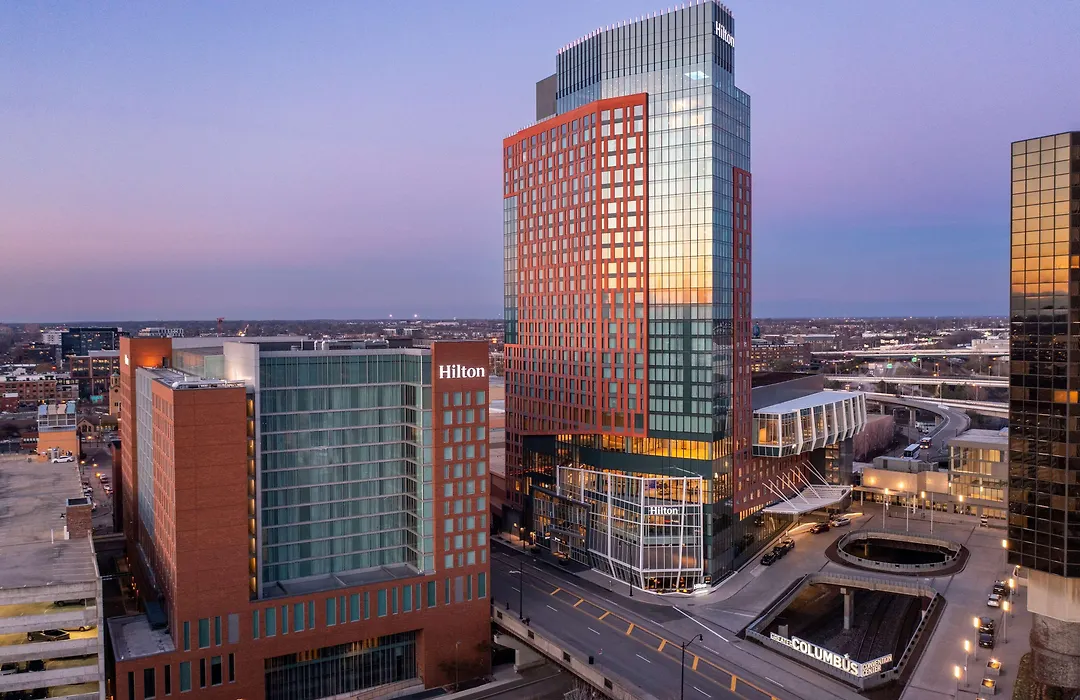 Hilton Columbus Downtown, rated 8.9/10 on Booking.com, offers 4-star accommodations with contemporary design and a diverse array of amenities. This Columbus hotel features a rooftop bar with 360-degree views and on-site dining options that highlight local ingredients.