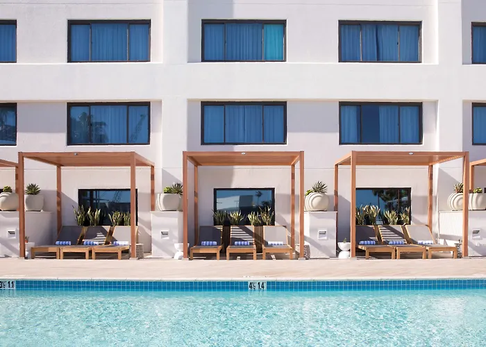 Hilton Santa Monica is conveniently located near attractions like Santa Monica Pier and Venice Beach. The nearest airport is Los Angeles International Airport, approximately 12.5 miles away, with public transport options including buses and city trains just a short walk from the hotel.