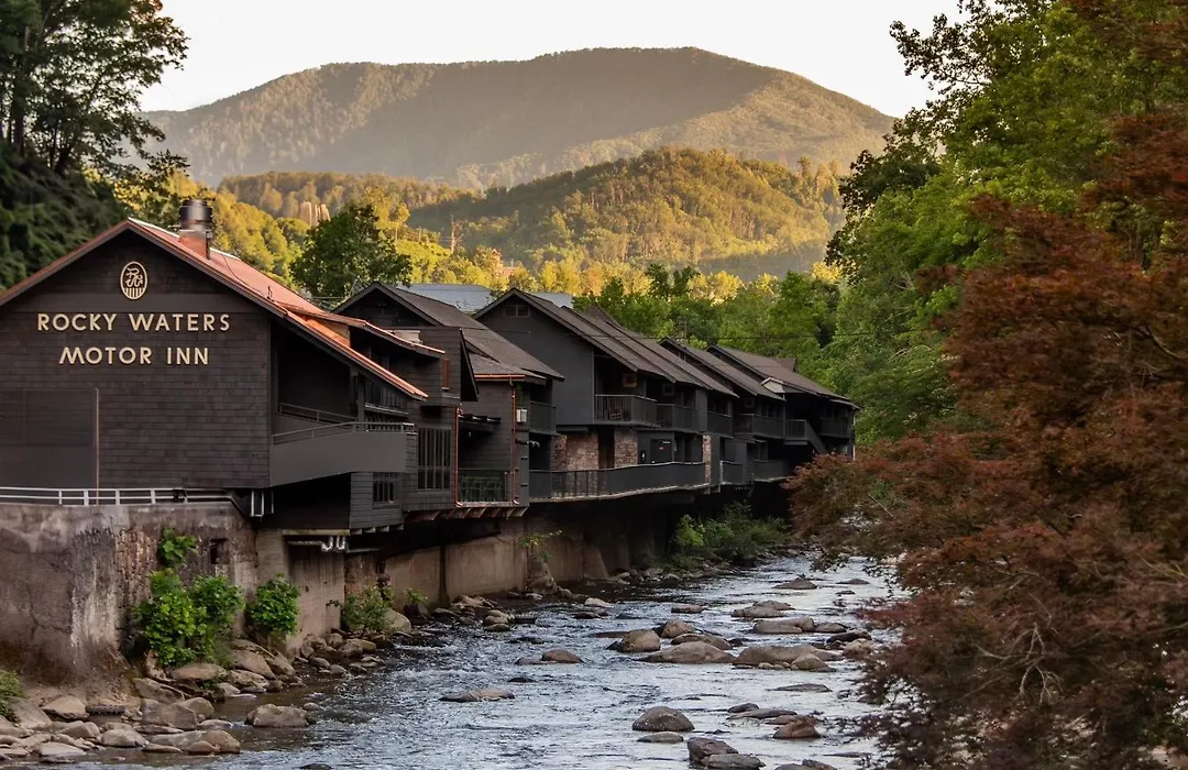 Historic Rocky Waters Inn, A Small Luxury Hotel, is a 4-star accommodation offering personalized service and upscale amenities. Guests have access to private balconies overlooking the Cliffbranch River and an on-site restaurant featuring Appalachian cuisine. The hotel is located near various attractions in Gatlinburg and the Great Smoky Mountains National Park.
