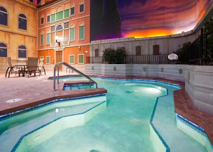 Rooms at the Holiday Inn Hotel feature one king or two queen beds, free WiFi, and a work desk. Each smoke-free suite includes a refrigerator, microwave, and HDTV for entertainment. Guests booking rooms receive five wristbands for access to the indoor Venetian Waterpark, open on weekends.