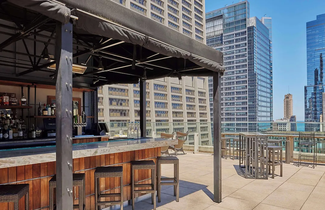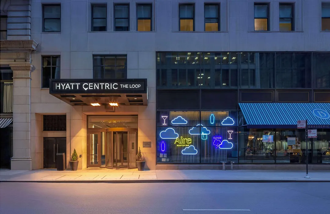 Hyatt Centric The Loop Chicago, a 4-star hotel rated 8.6/10 on Booking.com, features modern amenities and offers a rooftop terrace with panoramic skyline views. The hotel includes an on-site restaurant, a snack shop, and multiple meeting spaces suitable for business travelers.