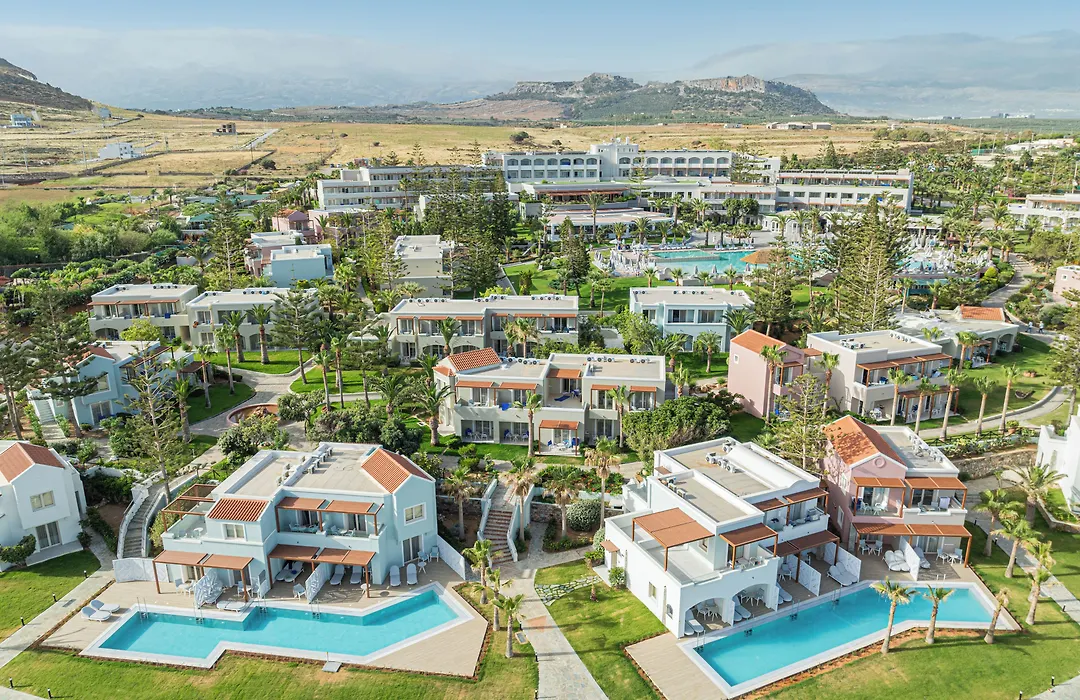 The Iberostar Selection Creta Marine offers a variety of rooms and bungalows designed for comfort with sea views and private pools. Guests can choose from family accommodations or more luxurious suites equipped with modern amenities like whirlpool baths and terraces overlooking the Aegean Sea.