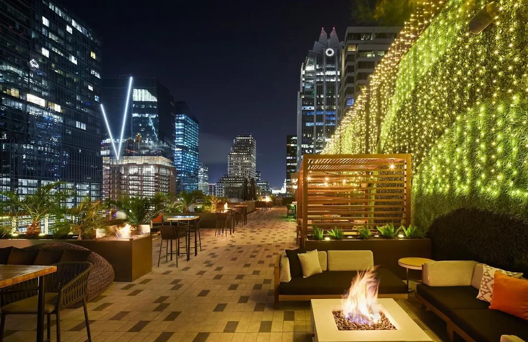 Dining options consist of Dean's Italian Steakhouse, noteworthy for its Wagyu steaks and handmade pastas. The hotel also features the Burger Bar, a unique food truck concept, and Edge Rooftop + Bar, where guests can enjoy craft cocktails with stunning skyline views. A Starbucks is available for on-the-go breakfast needs.