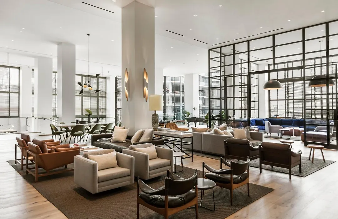Leisure amenities include a rooftop pool, outdoor lounge, and wellness offerings such as a 24-hour fitness center equipped with Peloton bikes. The hotel organizes regular events like live music performances and movie screenings.