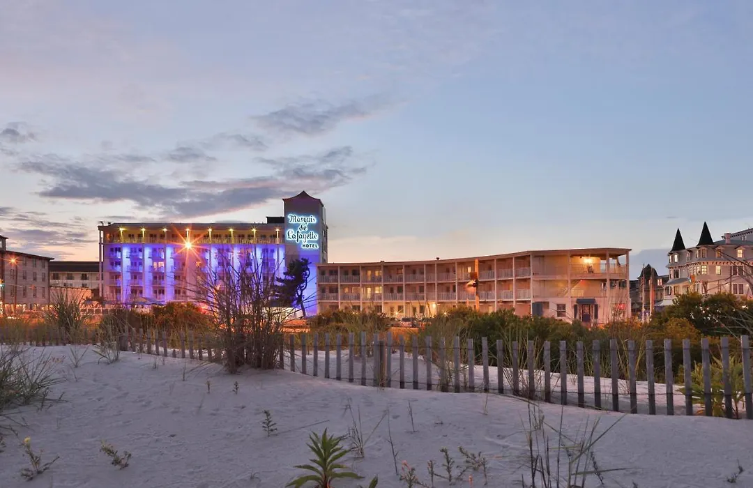 Marquis De Lafayette, rated 8.6/10 on Booking.com, is a 2-star Cape May hotel featuring beautifully appointed rooms and suites, most with private balconies overlooking the ocean. Guests can enjoy amenities such as a seasonal outdoor pool and dining options including the Barefoot Bar and 501 Beach restaurant.
