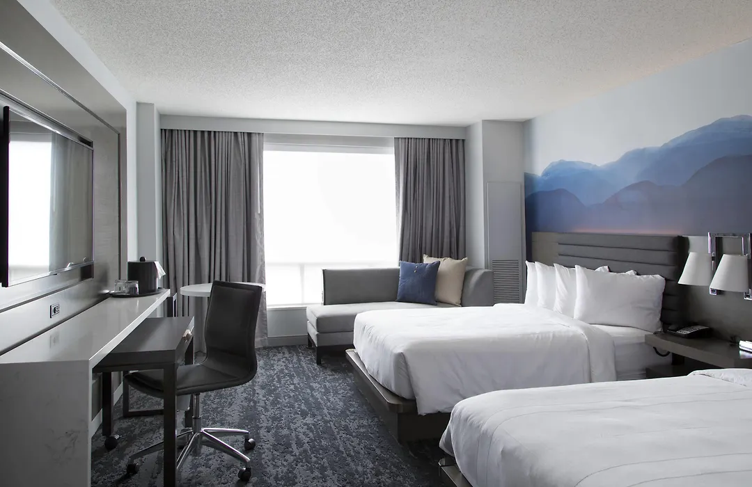 The guest rooms of Franklin Marriott Cool Springs feature plush beds, chic surroundings, and Smart TVs. Amenities include air conditioning, a tea and coffee maker, and complimentary Wi-Fi. The hotel provides access to This Works bath and body collection and room service is available.