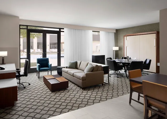 Marriott Dallas Allen Hotel & Convention Center showcases a sophisticated design reflecting the vibrant Texas urban landscape. This 4-star Allen hotel offers a range of amenities including a large outdoor pool, on-site dining, and a fitness center, catering to both leisure and business travelers.
