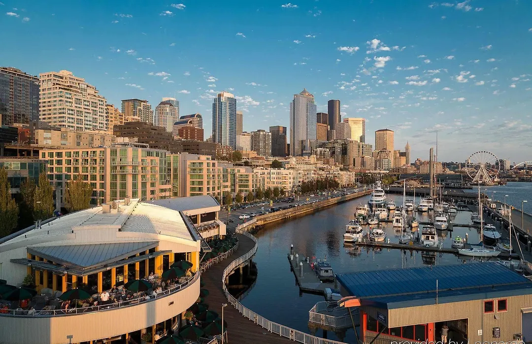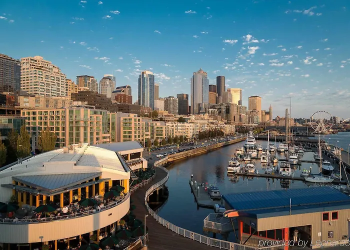 Seattle Marriott Waterfront, a 4-star hotel with an 8.3/10 rating, features views of Elliott Bay and nearby mountains. Guests enjoy amenities such as a 24-hour fitness center, an indoor/outdoor pool, and proximity to famous Seattle attractions like Pike Place Market and the Seattle Aquarium.