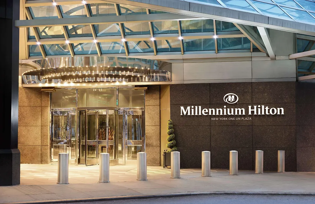 The Millennium Hilton New York One UN Plaza is near numerous landmarks such as the Empire State Building, Grand Central Terminal, and Rockefeller Center. Public transportation options include nearby subway stations and bus stops, providing convenient access to the city's attractions.