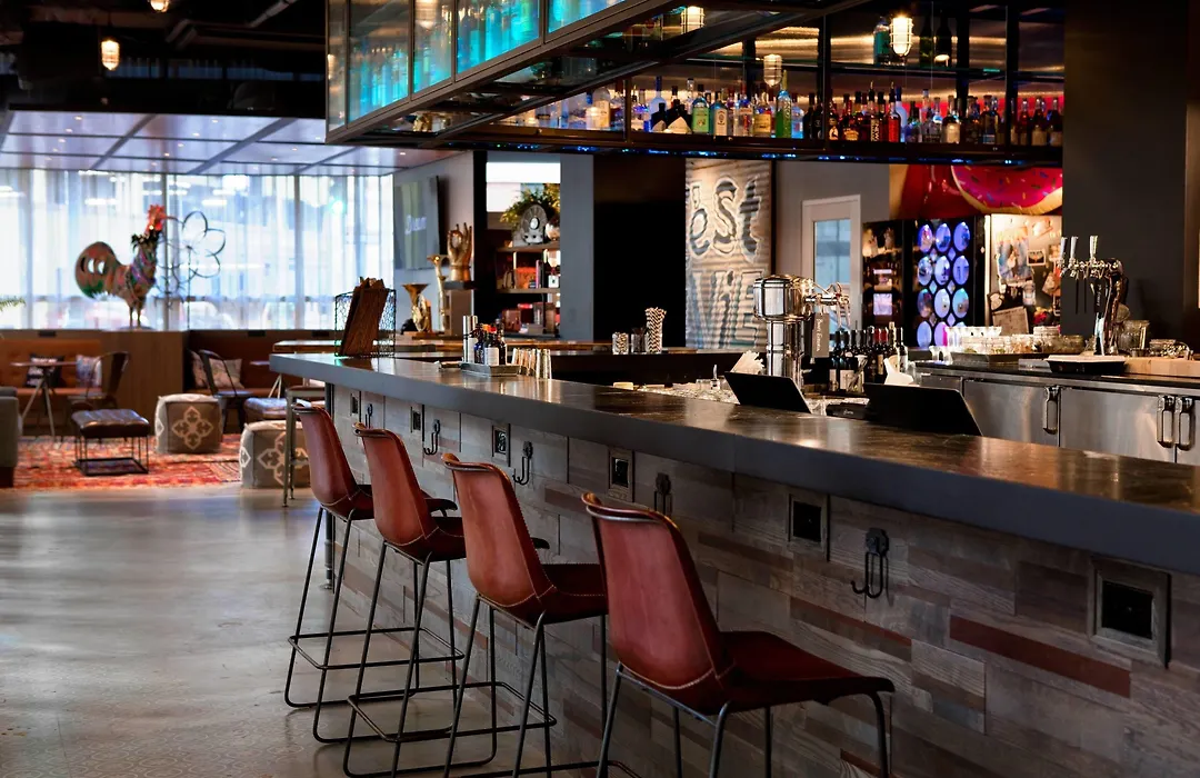 The hotel offers a Moxy Day Bar where guests can enjoy hand-crafted drinks and small plates. The breakfast bar features fresh bagels, fruit, and hot breakfast Naans.