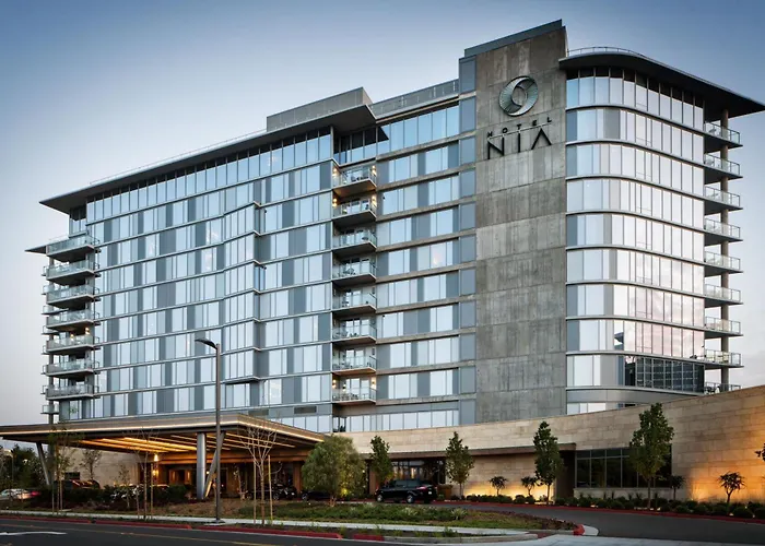 Hotel Nia, Autograph Collection is a modern luxury hotel in the heart of Menlo Park. It features upscale accommodations, an outdoor pool, and multiple dining options, including Mediterranean-inspired cuisine at Porta Blu.