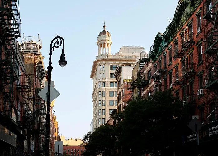 Nine Orchard, a 4-star hotel with a 9.2/10 rating, is situated in a meticulously restored, century-old landmark. This New York hotel features a bar, terrace, and upscale dining options, providing a sophisticated urban retreat.