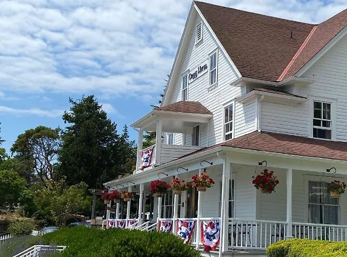 Orcas Hotel, a historic landmark since 1904, offers unique lodging steps from the Orcas Island Ferry Landing. Rated 8.8/10 on Booking.com, this pet-friendly hotel features an on-site café with locally inspired comfort food and nightly music events.