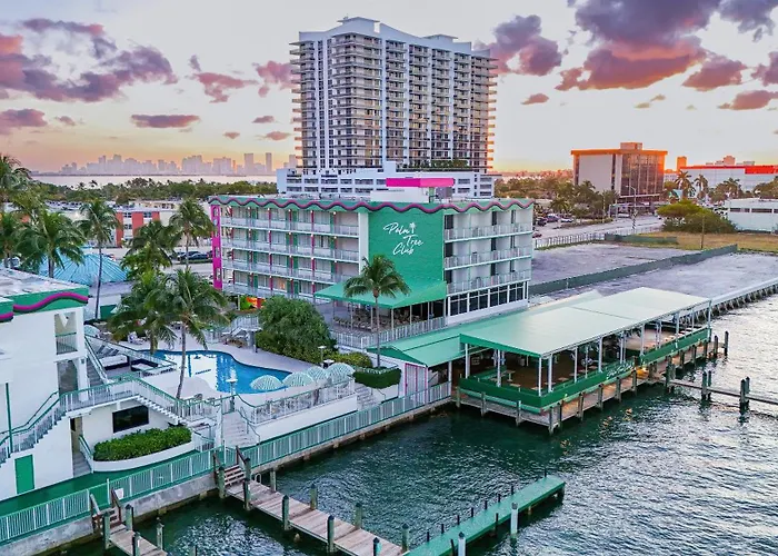Palm Tree Club Miami is a 3-star North Bay Village hotel featuring well-appointed rooms with amenities such as microwaves and refrigerators. Guests can enjoy access to a beautiful palm tree-lined heated pool and dining at Shuckers Bar and Grill.