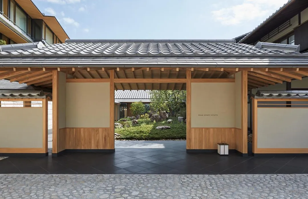 Park Hyatt Kyoto provides business services, ensuring a seamless experience for corporate guests. The hotel features interconnected buildings designed with large windows and light wood, following traditional Japanese architecture principles. Kyoto's transport links, including Kyoto Shiyakusho-mae subway station, are accessible within a few minutes' walk.