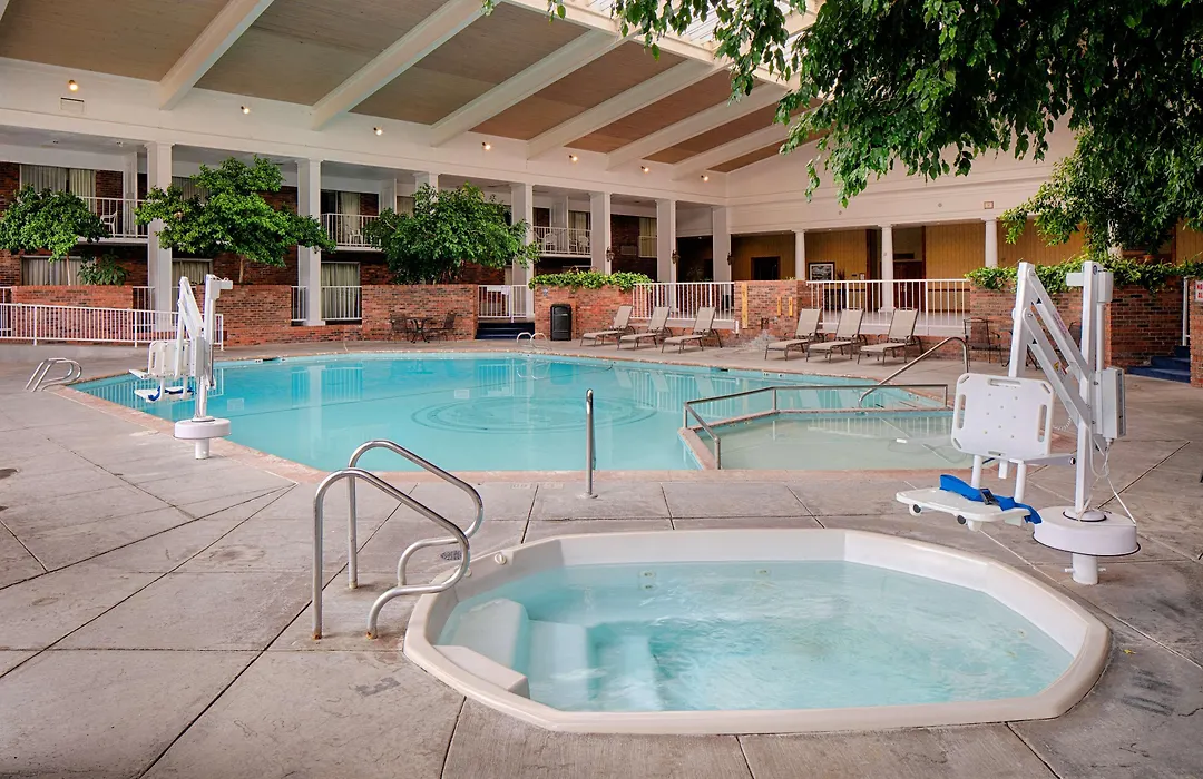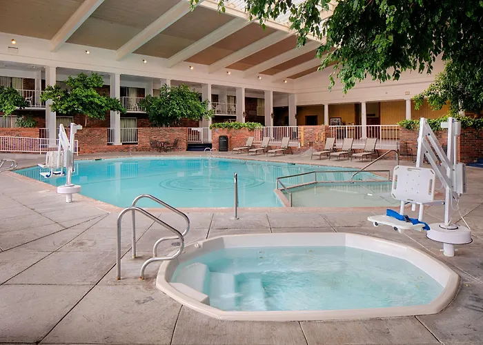 Rooms at Red Lion Hotel Pocatello include private balconies or patios, complimentary Wi-Fi, and modern room amenities. Guests can enjoy access to a large indoor swimming pool and an indoor hot tub, along with a fully equipped fitness center for exercise.