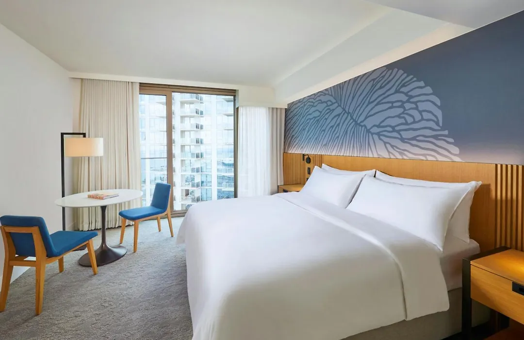 For leisure, the Renaissance Honolulu Hotel & Spa boasts a wellness center, Uhiwai Spa with Japanese-inspired Ofuro soaking baths, and a Sky Deck with two pools. The hotel also features event spaces for gatherings of up to 50 guests, enhancing the experience for both business and leisure travelers.