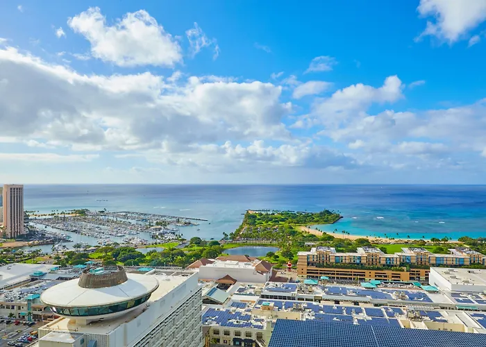 Renaissance Honolulu Hotel & Spa, a 5-star hotel rated 8.6/10 on Booking.com, features luxurious accommodations and an array of amenities, including two pools and a wellness center. The hotel offers easy access to local culture and shopping, surrounded by stunning ocean views and art pieces from renowned artists.