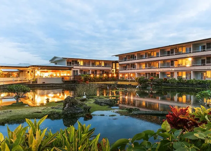 SCP Hilo Hotel provides a swimming pool and access to lush tropical gardens featuring a koi-filled lagoon. Guests can explore nearby water adventures, including kayaking and rafting, as well as local parks like Wailoa River State Park and Liliuokalani Park and Gardens.