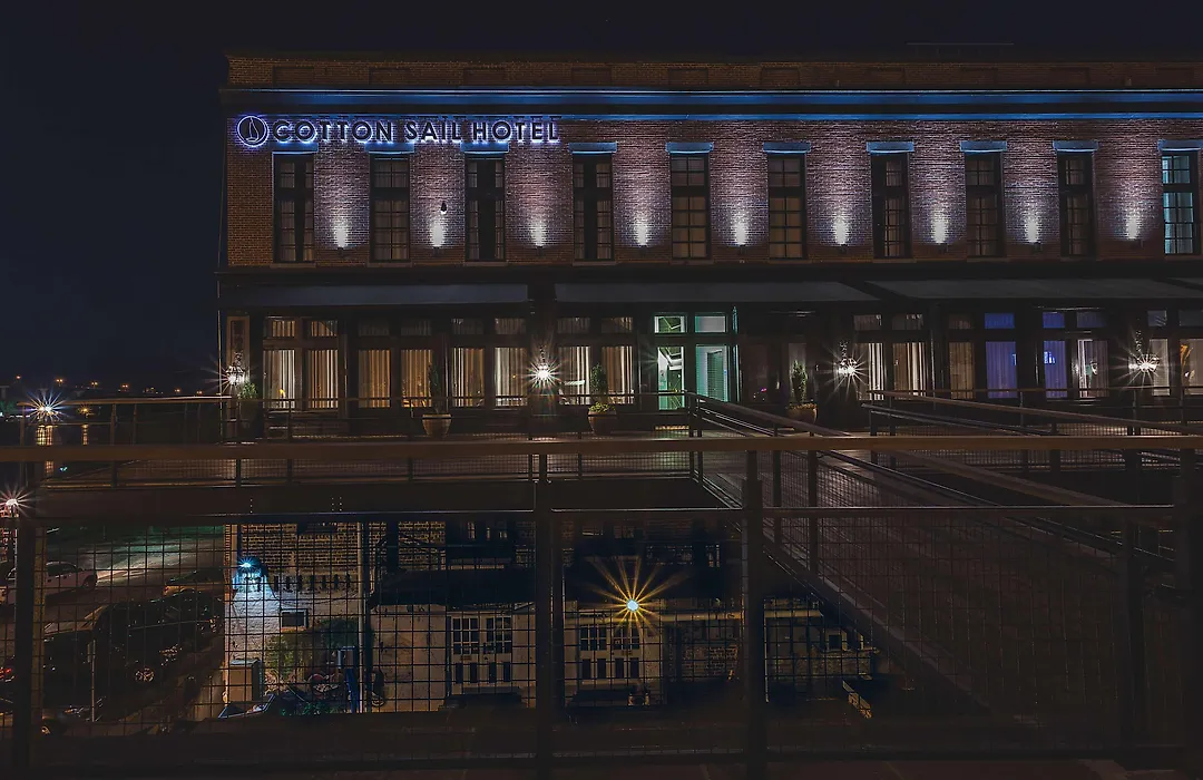 Resting on Savannah's renowned River Street, The Cotton Sail Hotel Savannah - Tapestry Collection By Hilton is a 4-star boutique hotel housed in a refurbished 1800s cotton warehouse. It offers a rooftop bar with historic Savannah River views, a fitness center, and an on-site restaurant serving local seafood and steaks.