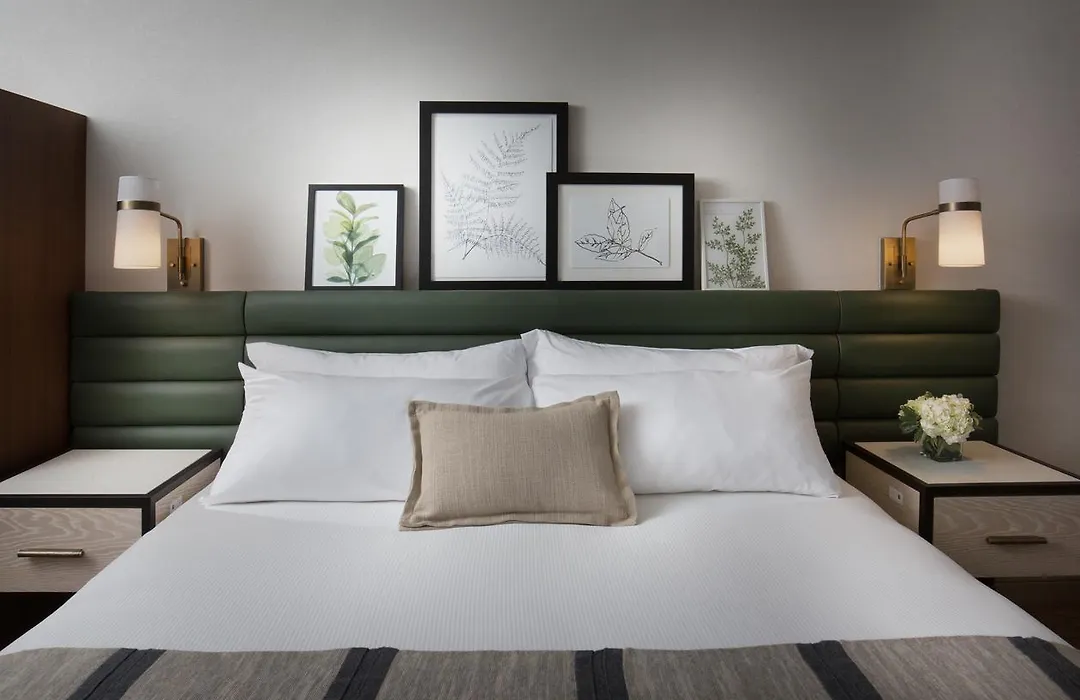 Guests can choose from 194 newly remodeled rooms and suites, all featuring modern decor, a flat-screen TV, complimentary wireless internet, and a refrigerator. Executive Suites include a sitting area with a sofa sleeper, making them suitable for families or business travelers. Accessible rooms with roll-in showers are also available.