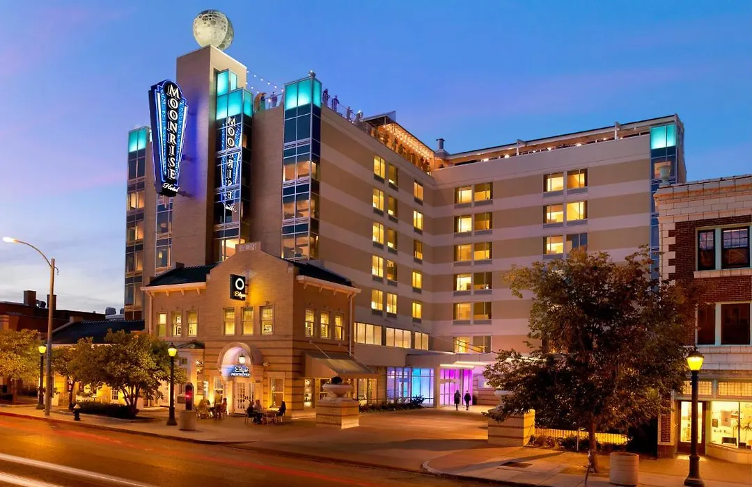 The Moonrise Hotel is a 4-star boutique hotel featuring a unique space theme and eco-friendly design elements. With its solar panel rooftop and vibrant location in the Delmar Loop, it offers guests an intriguing blend of luxury and sustainability. Notable amenities include the award-winning Eclipse Restaurant and the Rooftop Garden Bar.