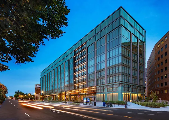 Transportation options include Union Station and Judiciary Square Metro Station within walking distance, along with multiple bus stops. This Washington hotel integrates green wellness and tech-forward design for a sustainable stay.