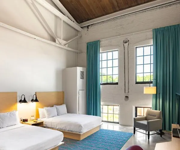 The Warehouse Hotel At Champion Mill, an 8.2/10 rated 3-star property, features 233 rooms within the largest indoor sports center in the United States. Amenities include free Wi-Fi, flat-screen TVs, and a private bathroom in every room. The hotel is a historical site, located in a renovated paper mill next to the Great Miami River.