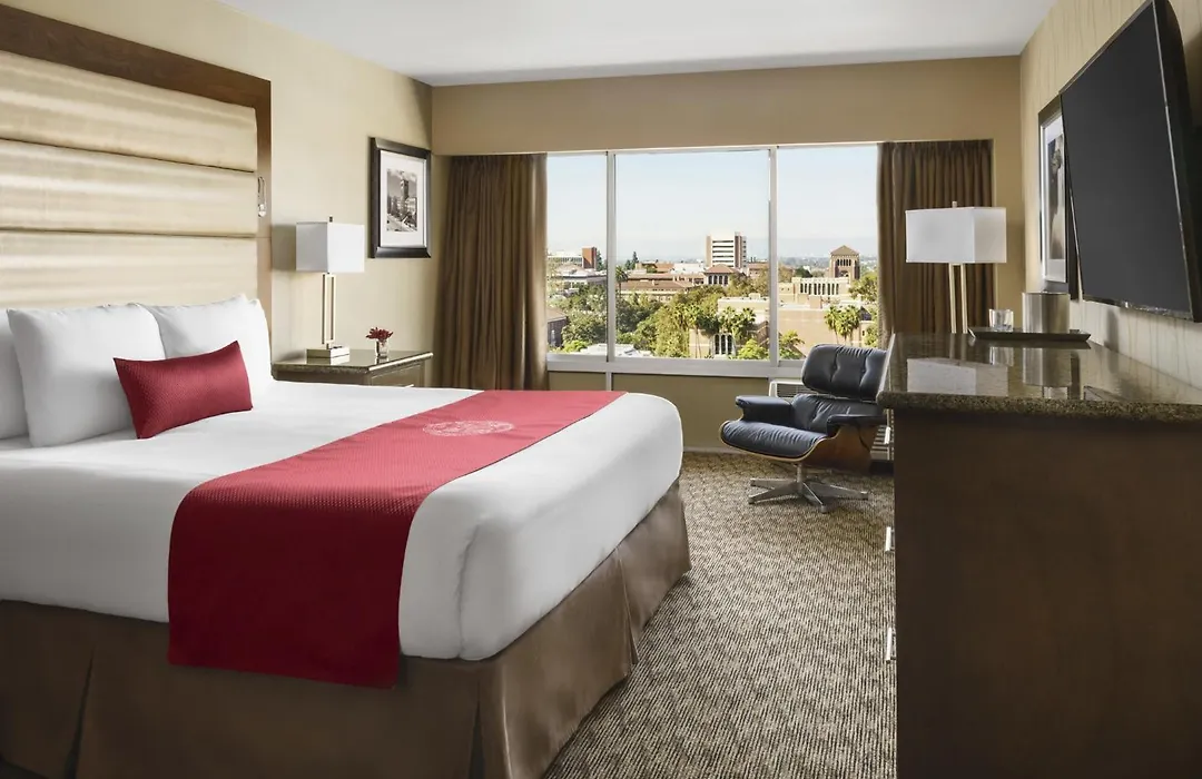 USC Hotel features 240 guest rooms and suites, an outdoor pool, onsite dining, and a full-service fitness center. This 4-star Los Angeles hotel is conveniently located adjacent to the USC campus and offers access to event venues like the Galen Center and LA Memorial Coliseum. USC Hotel is recognized for its sustainability efforts as the first university-owned lodging to receive a Green Seal certification.