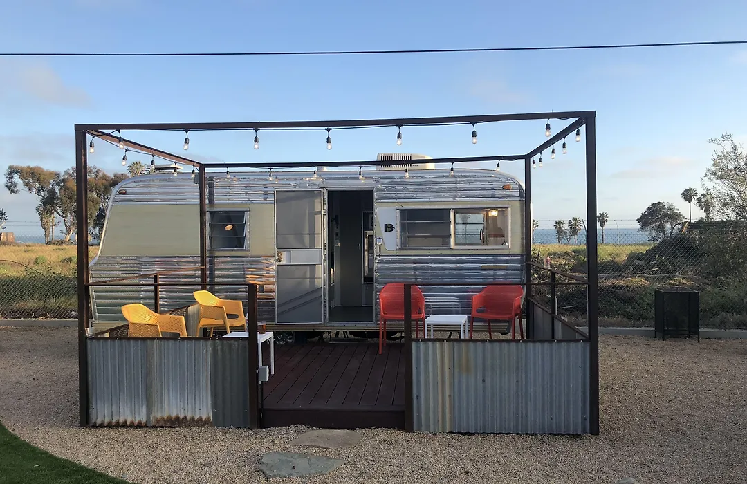 The lodging options at Waypoint Ventura include luxurious vintage trailers with private decks and BBQ facilities. Each unit is equipped with air conditioning, premium bedding, and free bottled water, enhancing the overall guest experience. Select trailers also allow pets for a fee of $50 per night.