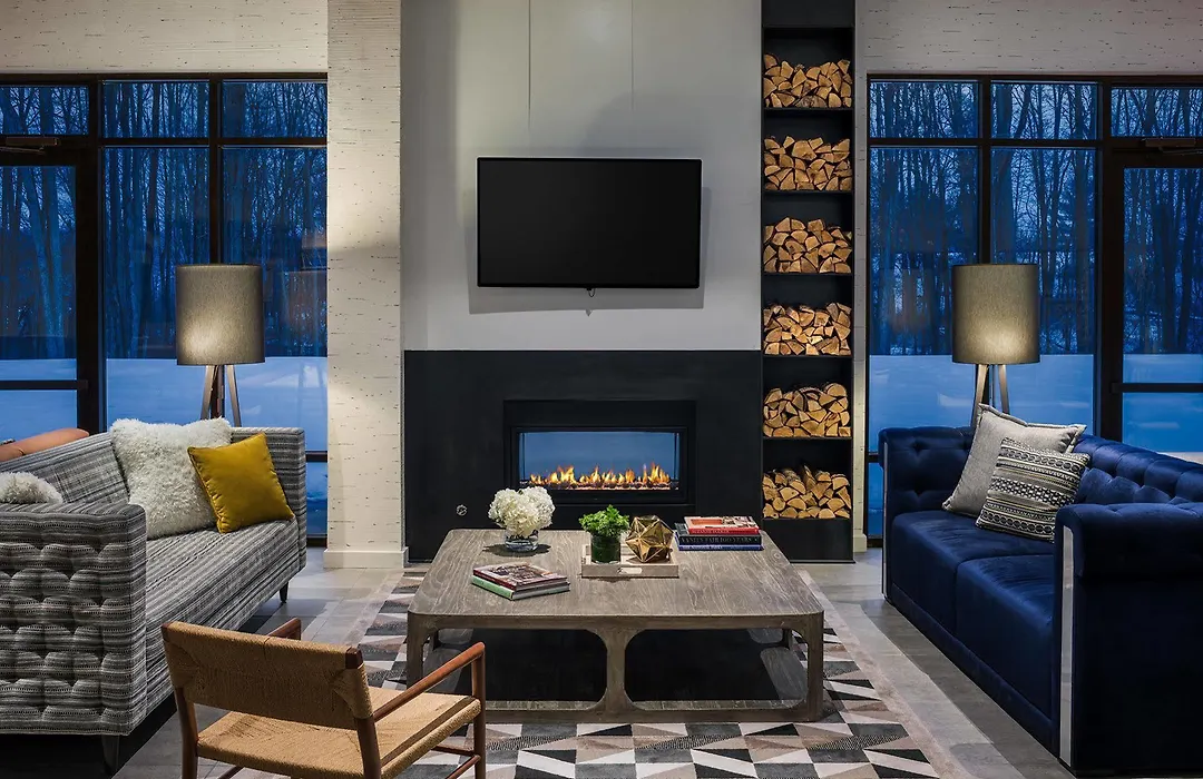 For leisure, Hotel Zero Degrees Danbury offers a sophisticated outdoor recreational area, The Lawn, complete with a patio, BBQ area, and fire pit. The spacious fitness center is available 24/7, providing guests with opportunities to maintain their workout routines.