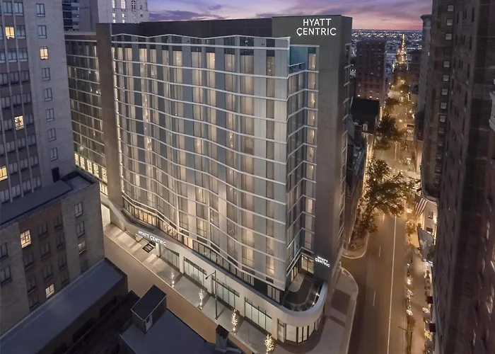 Hyatt Centric Center City Philadelphia offers a well-rated (8.5/10 on Booking.com) stay with modern amenities including a fitness center, restaurant, bar, and complimentary WiFi across the property. This 4-star Philadelphia hotel features air-conditioned rooms with a desk, safety deposit box, flat-screen TV, and private bathrooms.