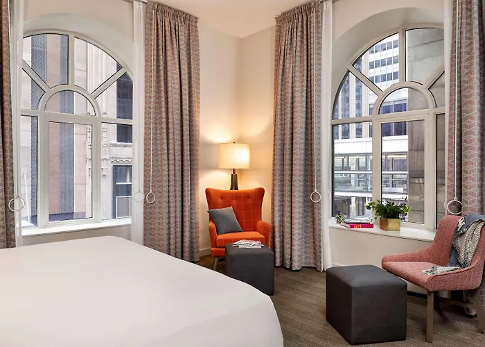 Hyatt Centric Downtown Minneapolis, rated 8.3/10 on Booking.com, features a distinct blend of sophisticated contemporary design and grand historic architecture. This 4-star Minneapolis hotel offers diverse dining options and connectivity through the city's skyway system for convenient access to downtown's attractions.