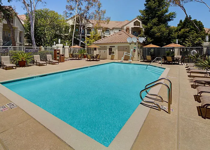 Hyatt House Belmont Redwood Shores, a 3-star hotel rated 8.4/10 on Booking.com, features upscale all-suite accommodations equipped with kitchens. Additional amenities include a fitness center, outdoor pool, and complimentary breakfast buffet.