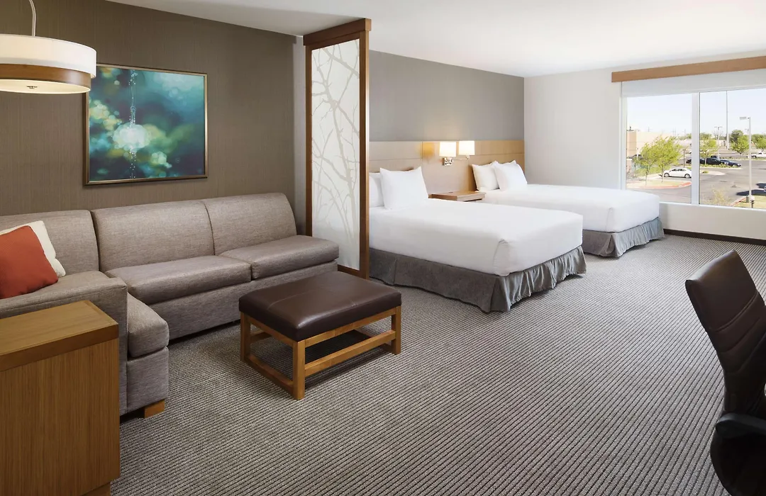 Rooms at Hyatt Place Lubbock feature flat-screen cable TVs, refrigerators, coffee machines, and air conditioning. Each room is fitted with a work desk and offers modern private bathrooms with showers and complimentary toiletries.