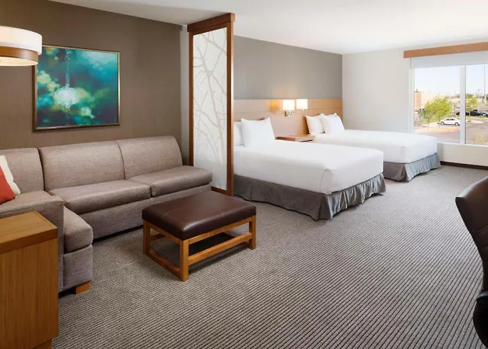 Hyatt Place Lubbock is a 3-star hotel with a rating of 8.7/10 on Booking.com, offering modern accommodations and amenities including an indoor pool and fitness center. Guests can enjoy a complimentary full breakfast on weekends and access to a business center.
