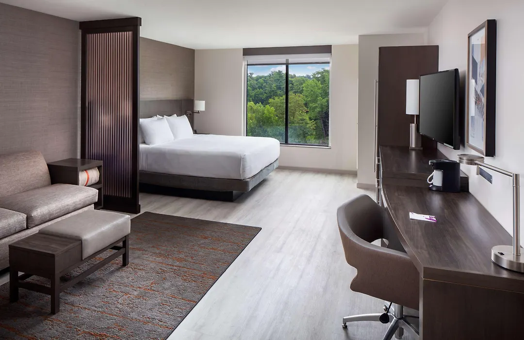 Rooms at Hyatt Place Poughkeepsie feature air conditioning, flat-screen televisions, and refrigerators. Private bathrooms include complimentary toiletries and hair dryers, with various room options available to accommodate different guest needs.
