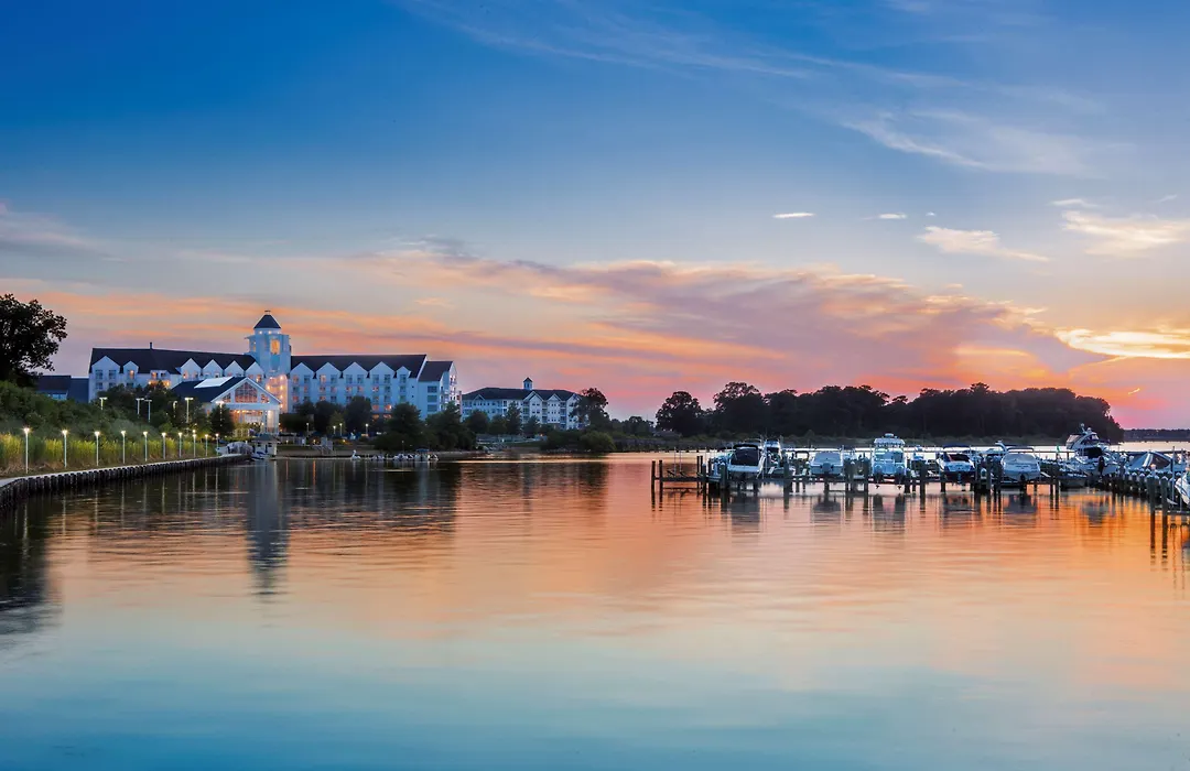 Hyatt Regency Chesapeake Bay Golf Resort, Spa & Marina offers a comprehensive resort experience with a four-star rating. Facilities include an 18-hole golf course, full-service Sago Spa and Salon, and a 150-slip marina. This Cambridge hotel provides ample outdoor activities and dining options.