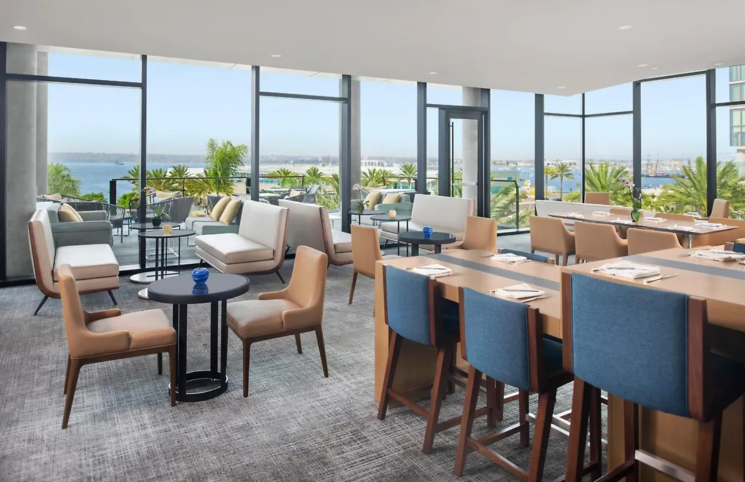 The hotel features 400 guest rooms with floor-to-ceiling windows that provide panoramic views of San Diego's waterfront and skyline. Each accommodation includes a mini-bar, coffee maker, and luxury bathroom amenities.