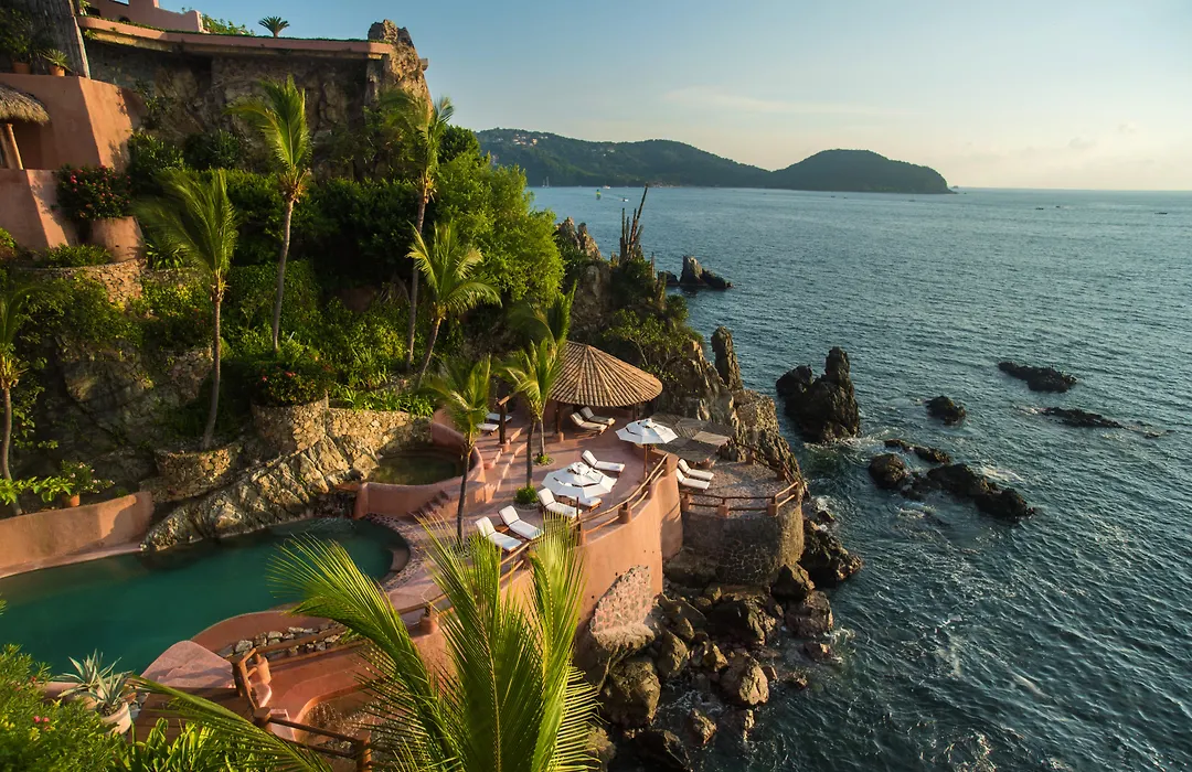 La Casa Que Canta (Adults Only) is a 5-star Zihuatanejo hotel featuring an oceanfront saltwater pool and spacious terraces with stunning views of Zihuatanejo Bay. This adults-only property combines thoughtful amenities with traditional Mexican architecture in a serene beachfront setting.