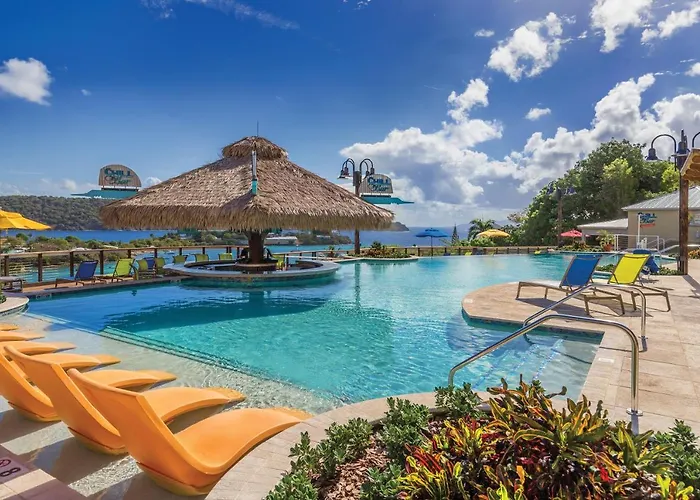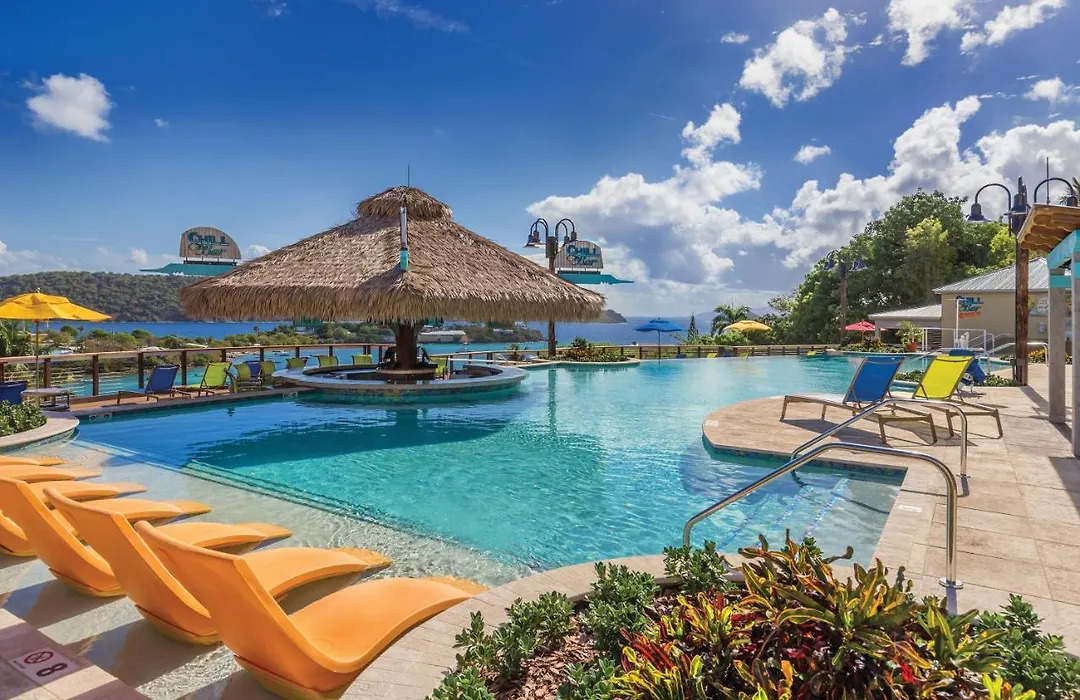Margaritaville Vacation Club - St Thomas, a 4-star Frydendal hotel, features beachfront accommodations with stunning views and essential facilities including free WiFi throughout the property and a fitness center. This vacation club offers two outdoor swimming pools for leisure and relaxation.