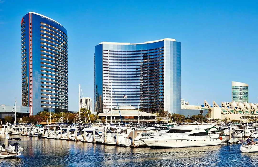 Marriott Marquis San Diego Marina is a 4-star San Diego hotel offering scenic views of the waterfront and San Diego Bay. The hotel features a resort-style pool, multiple dining options, and extensive meeting facilities with nearly 271000 square feet of event space. Unique attractions such as the Topgolf Swing Suite and The Hideaway spa enhance the guest experience.