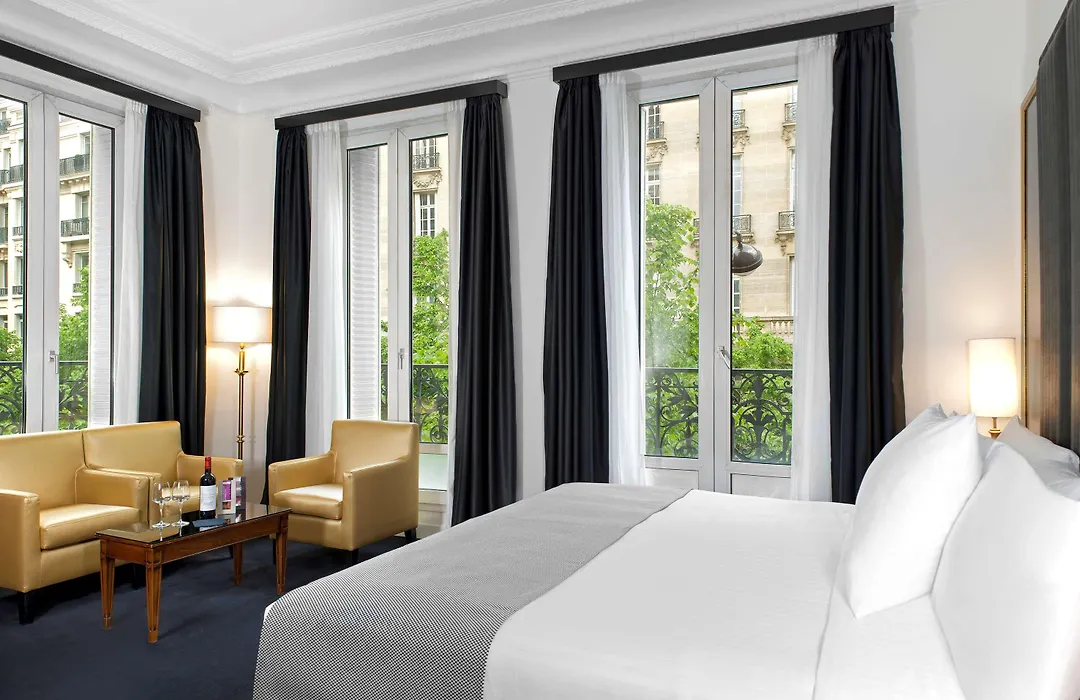 Melia Paris Champs Elysees, a 4-star Paris hotel with an 8.0/10 rating on Booking.com, offers cozy rooms and an elegant bar. This property serves as a starting point for exploring iconic sights like the Eiffel Tower and Arc de Triomphe while featuring a library lounge and cozy outdoor terrace.